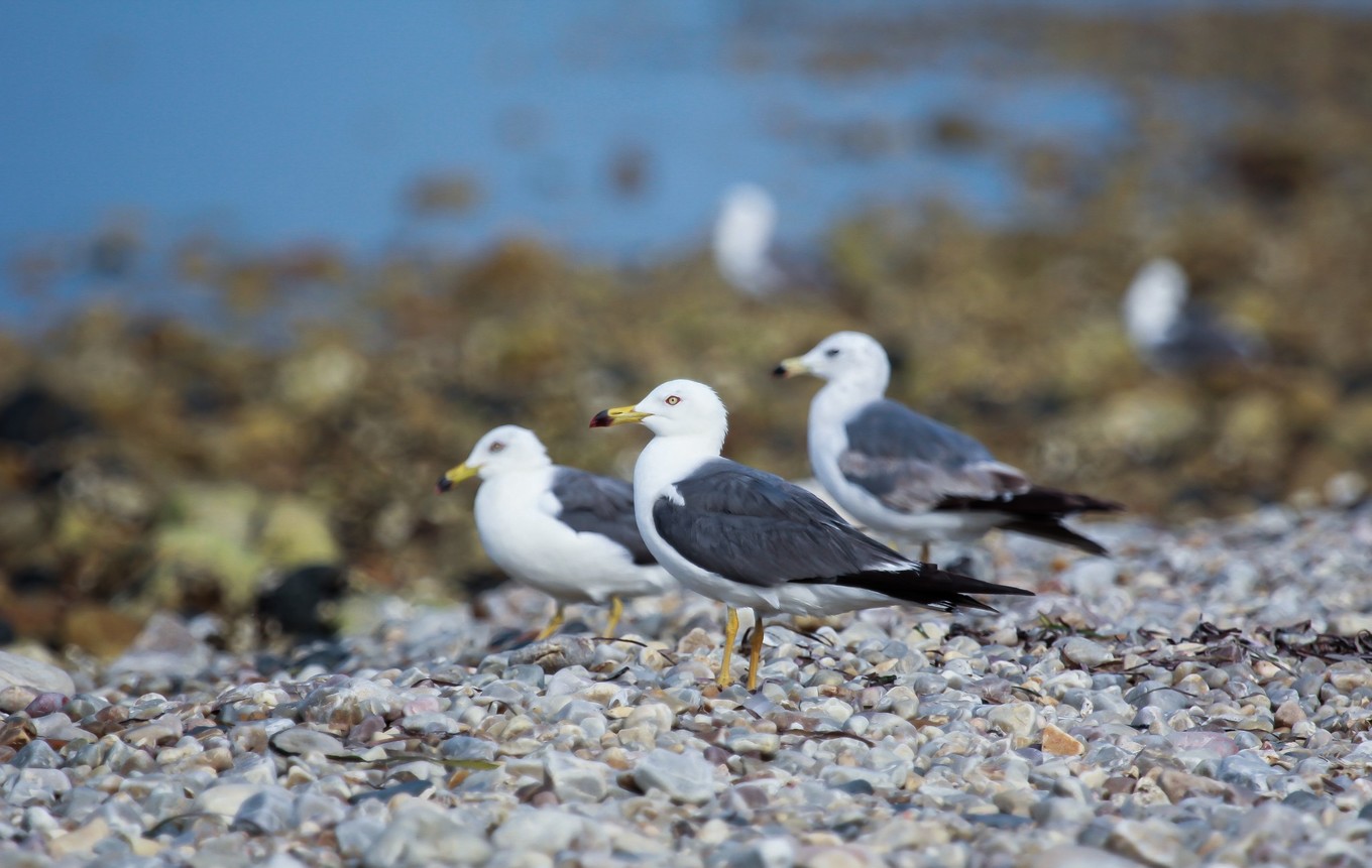 上面有很多海鷗覓食,休息