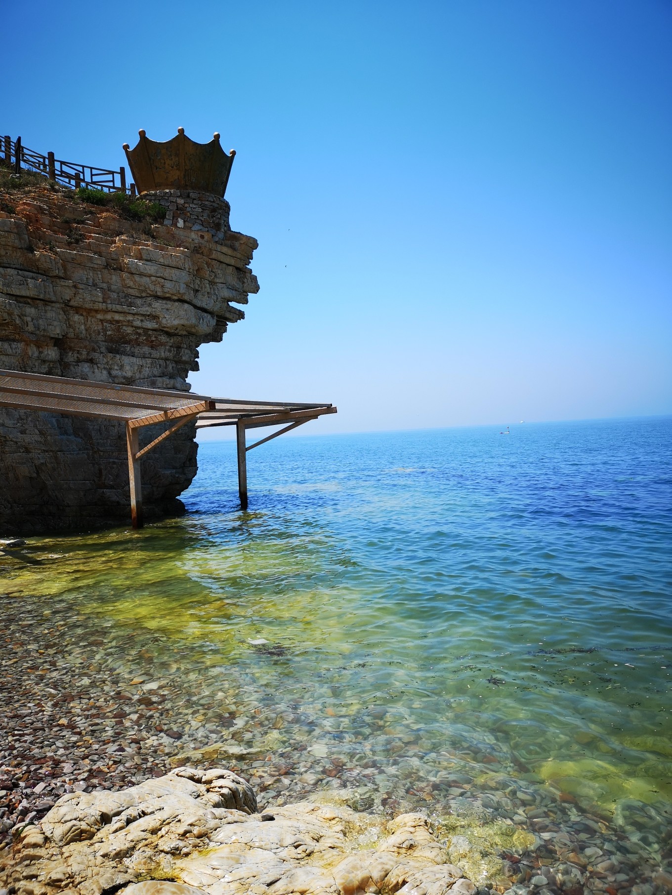 這里的海灘不是沙,而是獨(dú)有的圓石,踩在腳下,嘩啦啦地響……