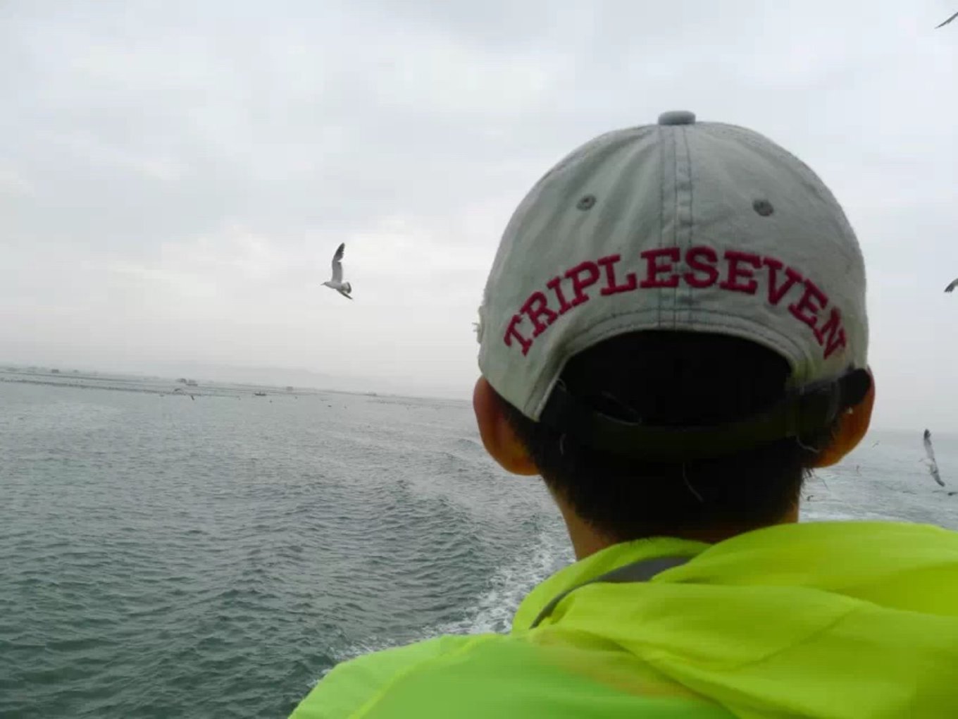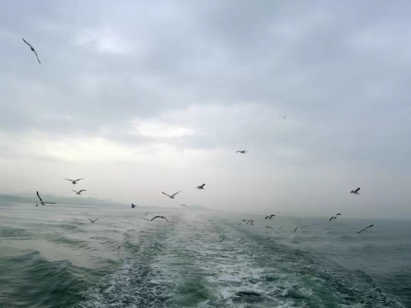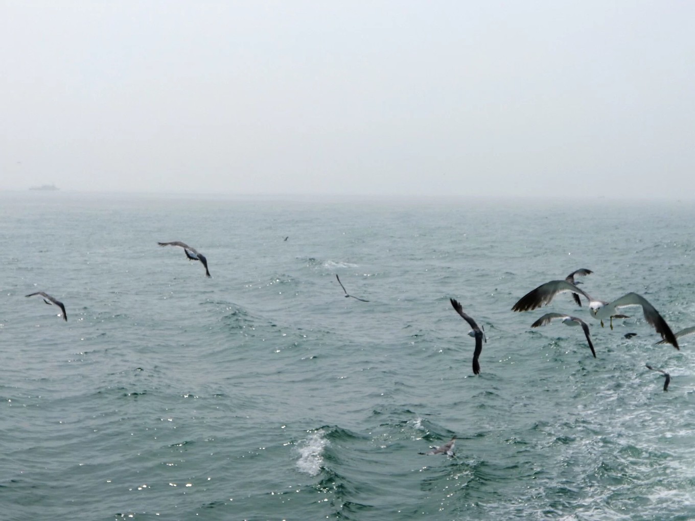 這些海上精靈漂亮吧?它們可聰明了,動作非常敏捷,我們今天重點(diǎn)就是為了去萬鳥島看海鷗,這還沒到萬鳥島,已經(jīng)有很多鳥跟隨我們的船尾飛翔。 海上風(fēng)很大,有不少人暈船,我們一直在船尾呆著。