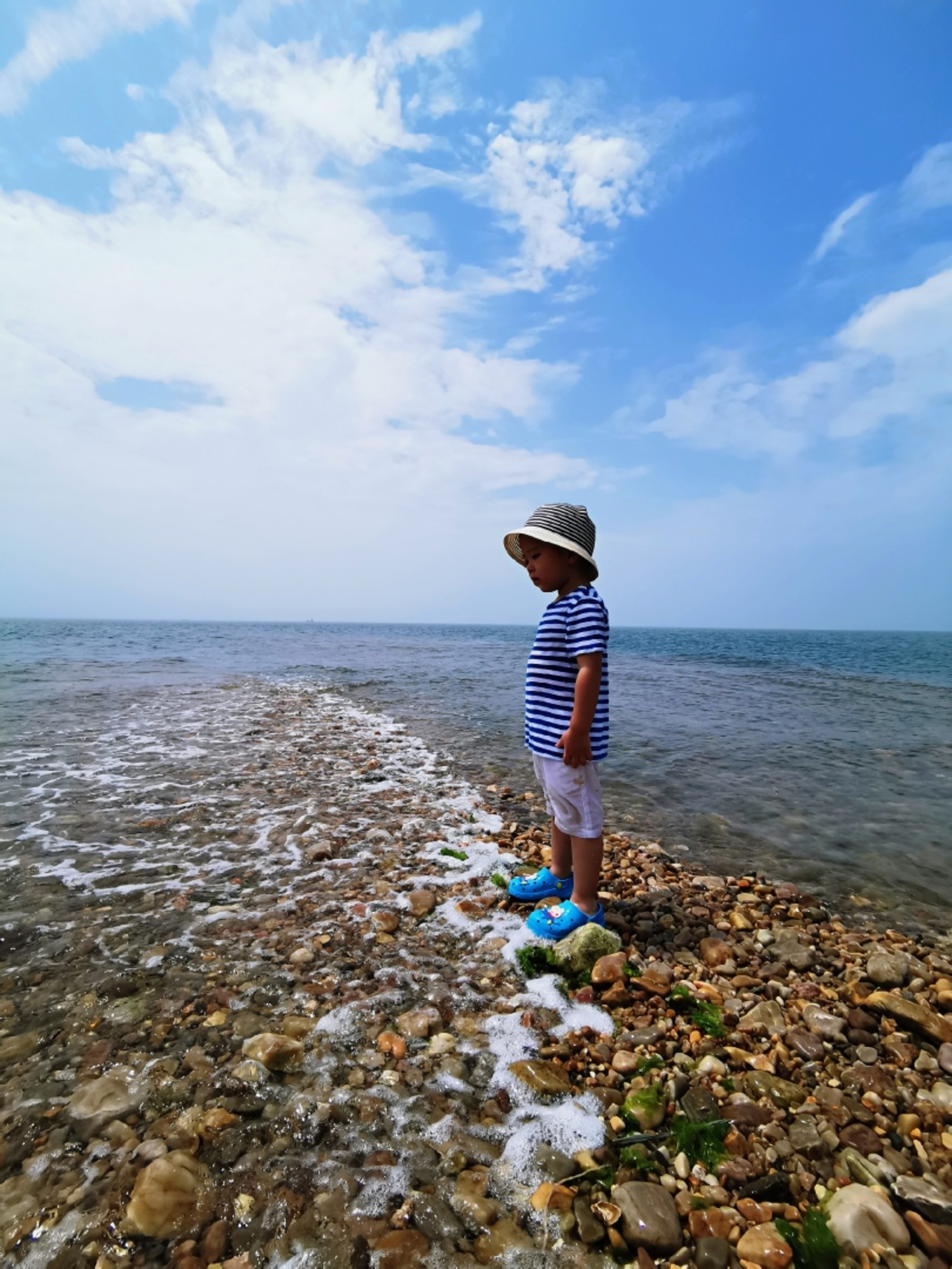 帶著孩子,休閑為主,長島的球石海灘聽說已久,到了月牙灣海邊的時候還是很美,而且越看越好看,石子浸泡在海水中很潤很美。