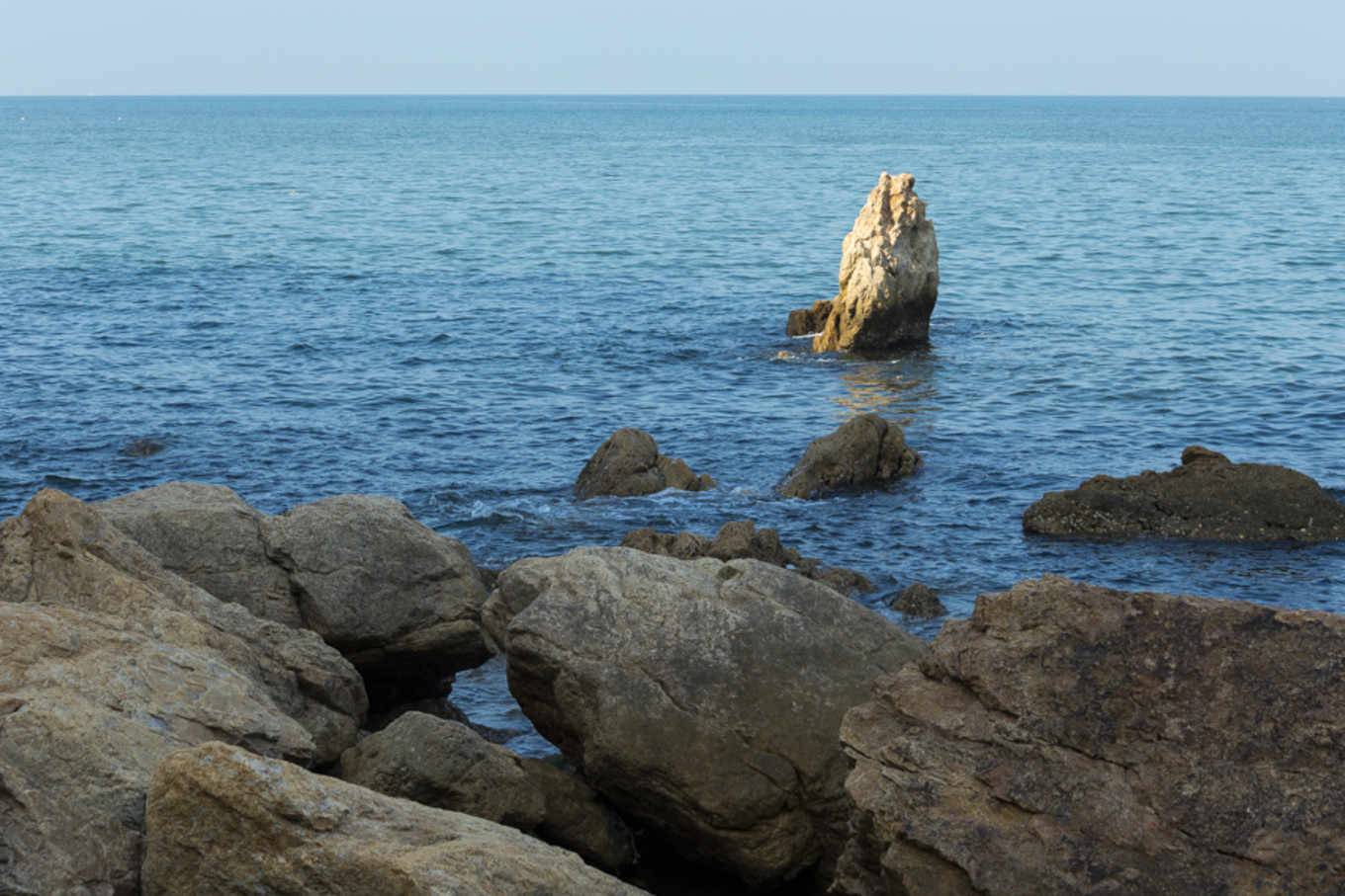 從九丈崖出來不遠就是月牙灣,這個地方比較特別的是海邊沒有沙灘,而是球石組成的石灘。光腳踩上去略有點疼,可以享受一下天然的足底按摩。