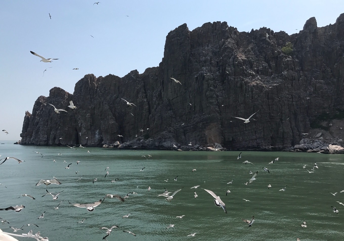 到達(dá)萬鳥島,島的崖壁上都是海鷗,船只能遠(yuǎn)遠(yuǎn)的觀望。