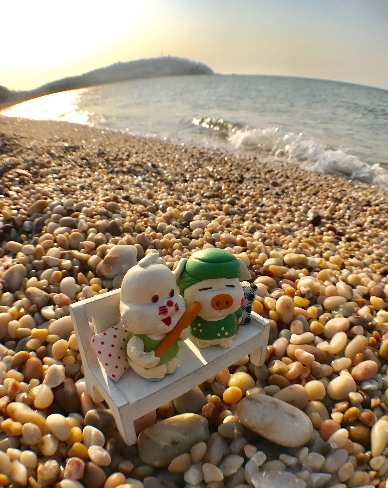 色彩繽紛的球石在夕陽的映襯下更加閃耀奪目。