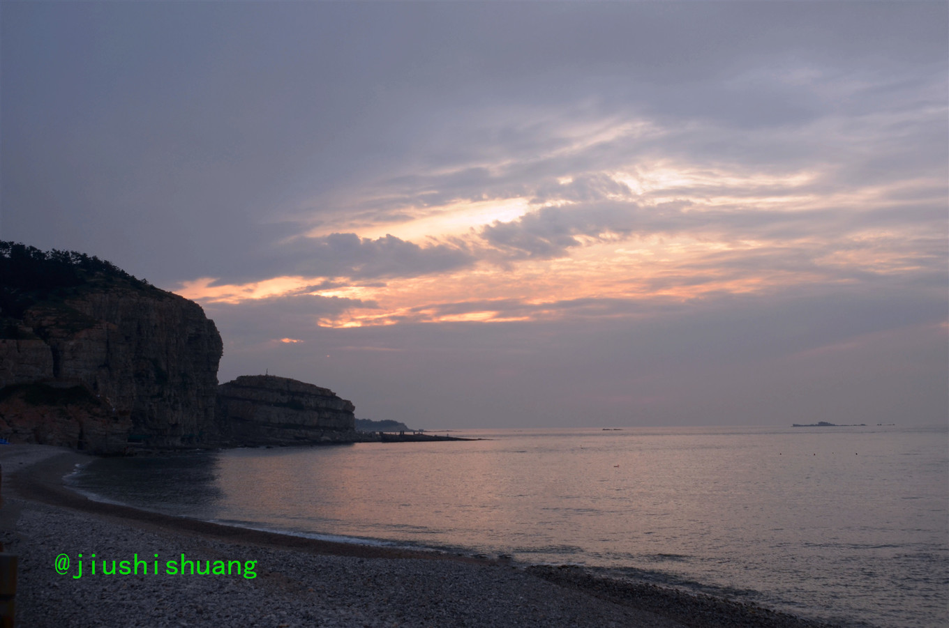 九丈崖在長島最西北邊,是觀日落的絕佳景地,我們沒有看到九丈崖日落,一道(珍珠隧道)也沒有玩,姐妹們就想坐在石頭上,看著渤海海面上突出的礁石,靜靜地呆坐遐想......