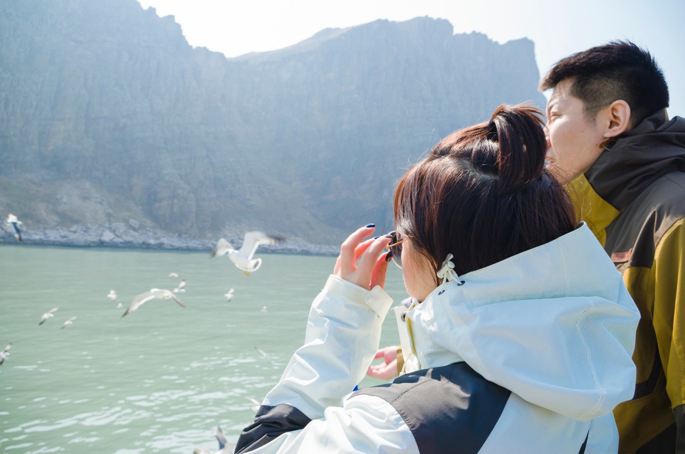 等我們離港口越來越遠(yuǎn)的時候,海鷗愈來愈多,船上的旅客都被眼前的景象所吸引,有的游客拿了些面包來喂海鷗。海鷗在天空飛的樣子真的很不一樣,同行的伙伴一開始還以為是模型鳥,逗得我哭笑不得。