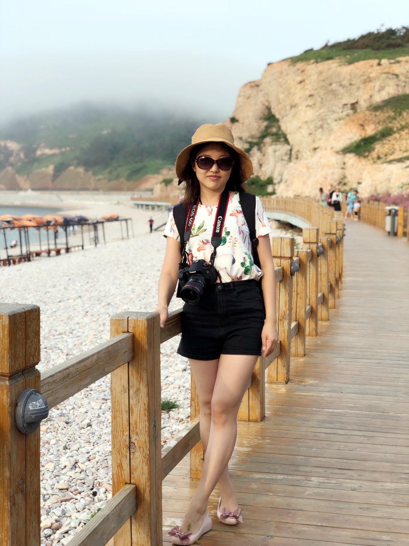 幸好漁家在長島的最北端,離九丈崖步行僅七八分鐘,離月牙灣僅5分鐘的車程,這倒讓我感到很欣慰。午飯后稍微休息我們便溜達(dá)到九丈崖,不得不說這里的水確實(shí)特別干凈,雖然天氣多云且多霧,仍然可見湛藍(lán)清澈的海水!據(jù)說這里的黃昏是觀日落的最佳地,攝影愛好者一定不要錯過