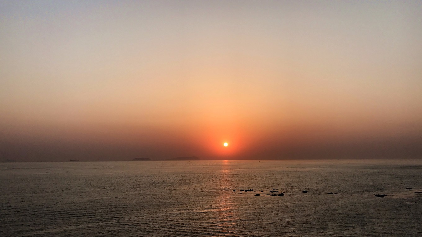 早上4點(diǎn)起床,跨海大橋上看日出。