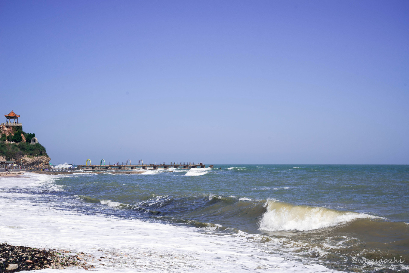 因?yàn)楦忻暗脑?,沒能在傍晚前趕到九丈崖看日落,結(jié)果發(fā)現(xiàn)北長(zhǎng)山鄉(xiāng)門口的漁場(chǎng)很不錯(cuò),好多人在這里嬉玩。走近一看水好清澈平靜啊,宛如湖水,完全感覺不出海水的洶涌,小石子也超級(jí)好看?。ǜ杏X長(zhǎng)島的海邊小石頭太漂亮了吧)