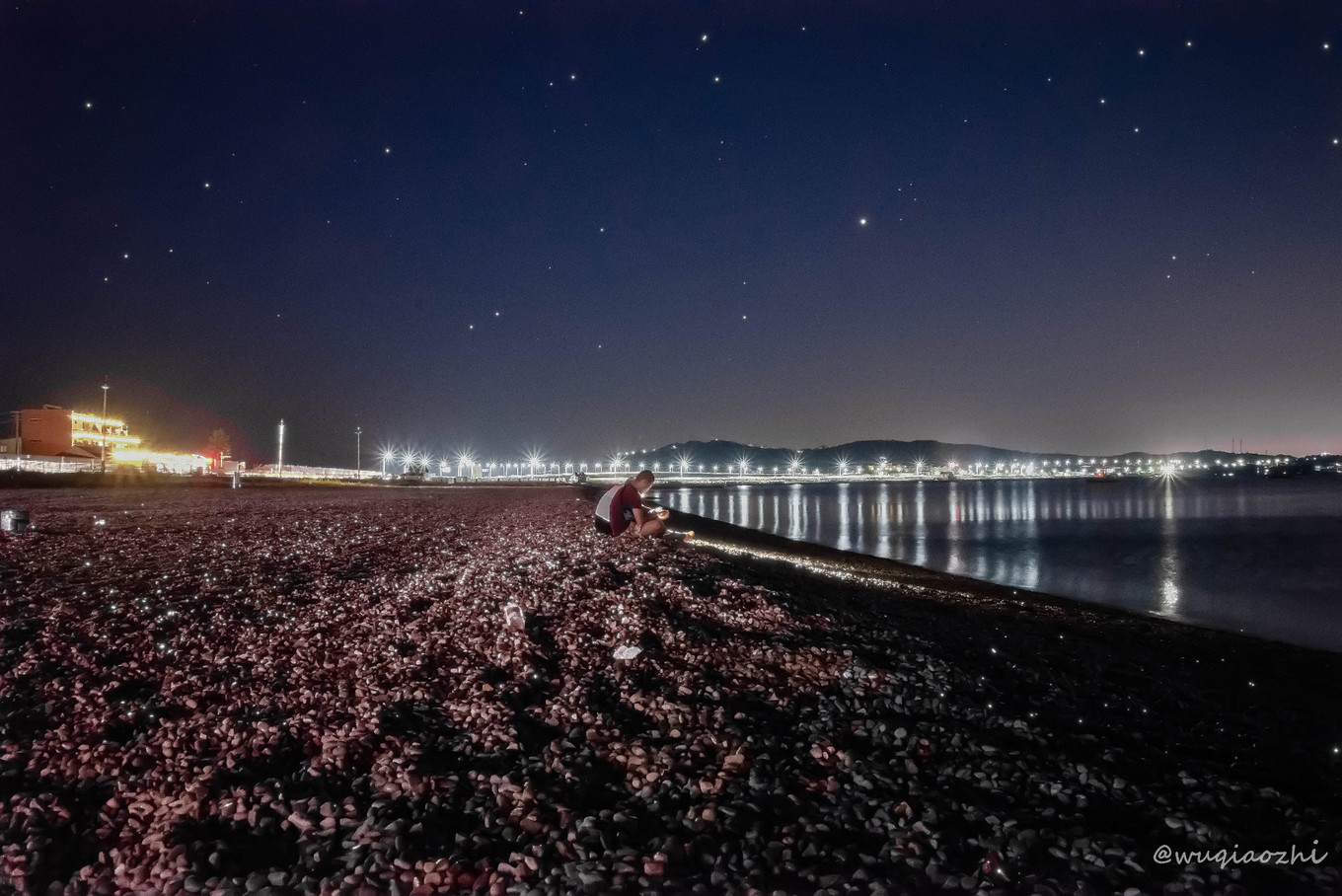 月亮、平靜的“湖水”、美麗的小石頭