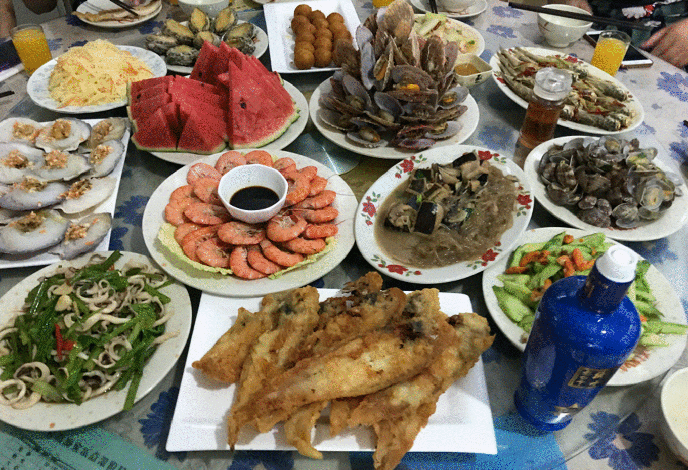 下了船,給漁家樂的老板打電話,老板超級熱情,說早就備好了飯菜,出門迎接了。、