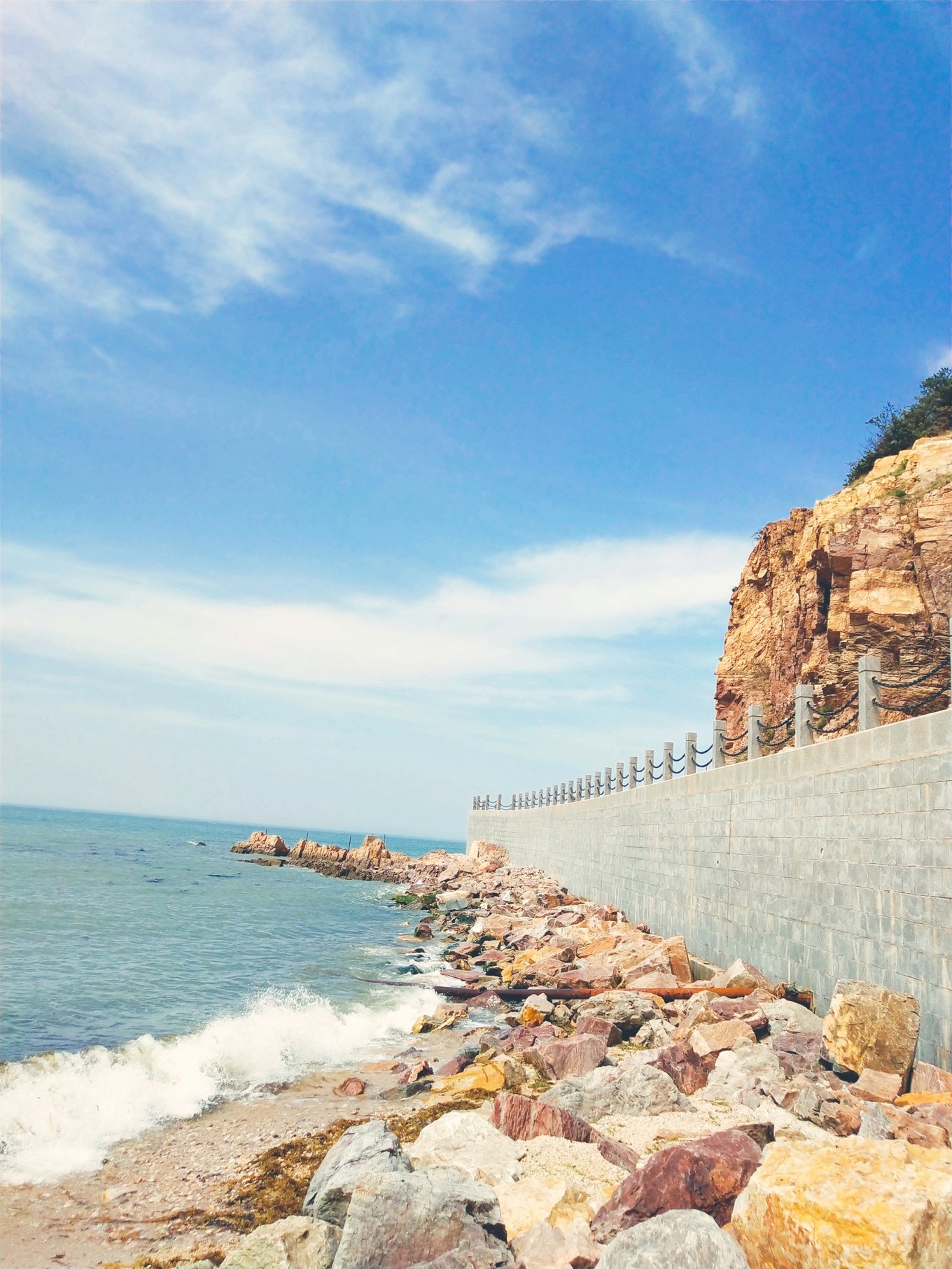 一路下山來(lái)到海邊,雖然前一天已經(jīng)在海邊逛大半天了,但是這里依然能吸引我,因?yàn)檫@里有特有的林海棧道。天氣特別好,在這里隨便一拍,都是逆天美景。