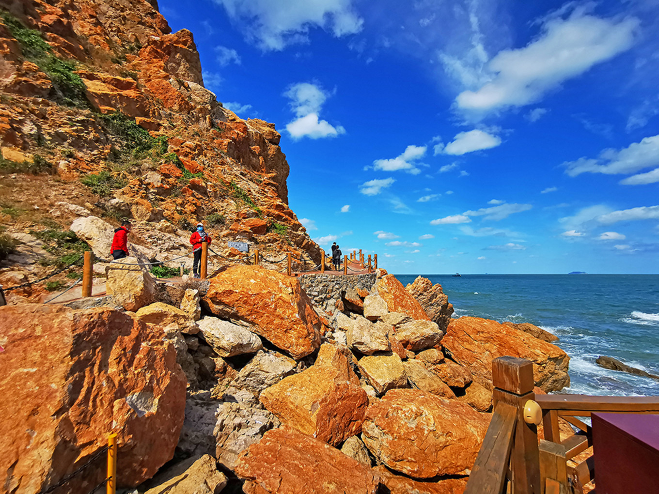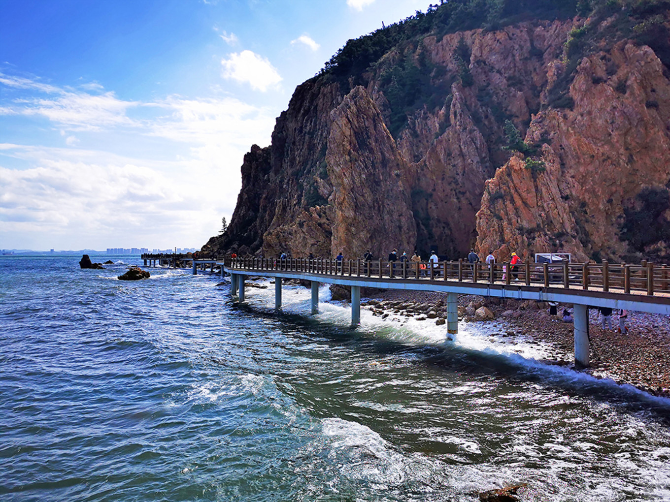 那天風很大,浪也很急,雖然稱不上“驚濤駭浪”,但剛站在棧道?????????上時,也能感到人在自然面前的渺小和無力。