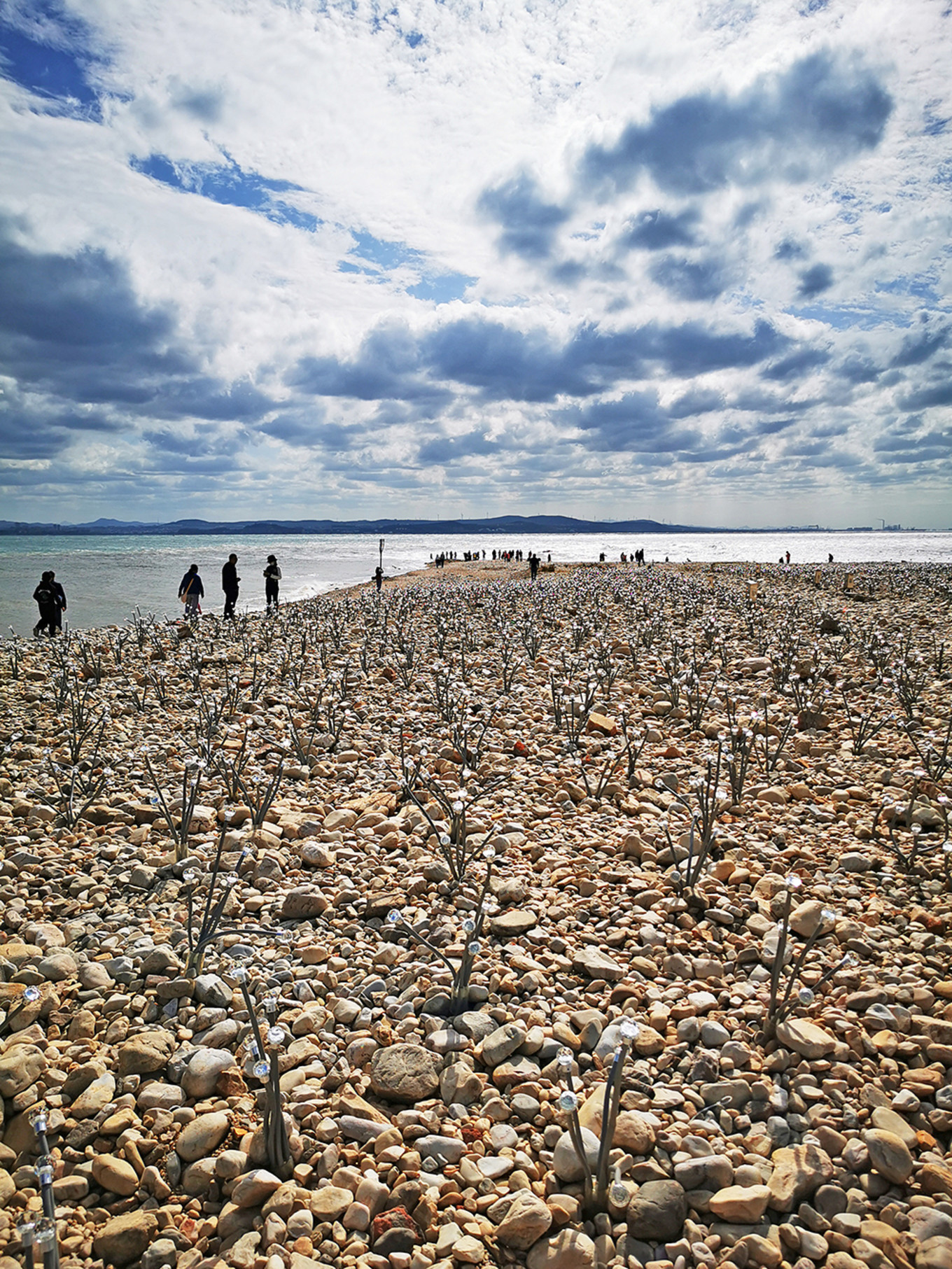站在界碑處向南看,島岸邊突出這么個尖尖的海灘,這里就是分界線了。據(jù)說在合適的光線下,能看到黃海與渤海海水之間明顯的分野,不過我們大概是沒碰上那種“合適的光線”。渤海作為內(nèi)海,含沙量大,污染也重,海水交換更新很慢,前些年野生魚蝦幾乎絕跡,這些www.qiangwoapp.com年好得多了,海水也沒那么臟了,這分界線怕是也沒之前明顯了。