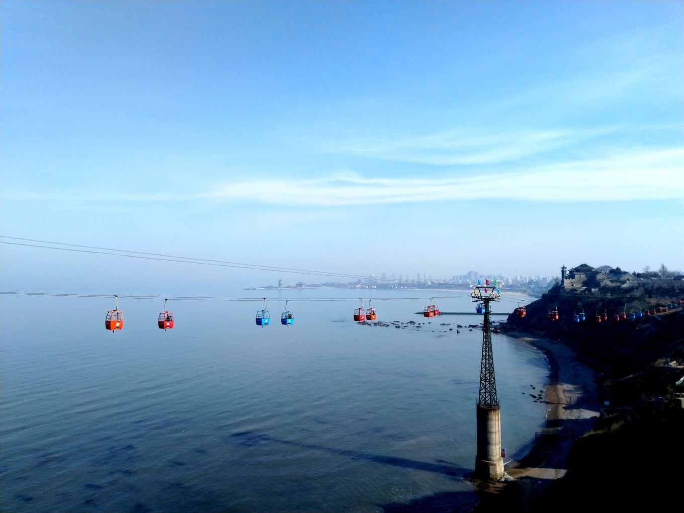 吃了午飯已經(jīng)快兩點(diǎn)了,但是碼頭廣播依然在播放停航通知,這會兒我已經(jīng)開始擔(dān)心了,提前在島上定了賓館,就算上不去島錢也不能退,不過也沒辦法,那就碼頭附近溜達(dá)溜達(dá)吧??瓦\(yùn)港不遠(yuǎn)處是蓬萊水族館,鑒于最近去的水族館有點(diǎn)多,我們放棄了這個選擇。沿著山路往山上走,路過一個小門,看樣子像是景區(qū),但是門口售票亭已經(jīng)關(guān)閉,驗(yàn)票機(jī)器也已經(jīng)關(guān)了,我們打算進(jìn)去轉(zhuǎn)轉(zhuǎn),這個地方一路都是景色,沒有其他游客,沿著山路走,遠(yuǎn)處的城市被霧氣沉浸,挺有蓬萊仙境的感覺。