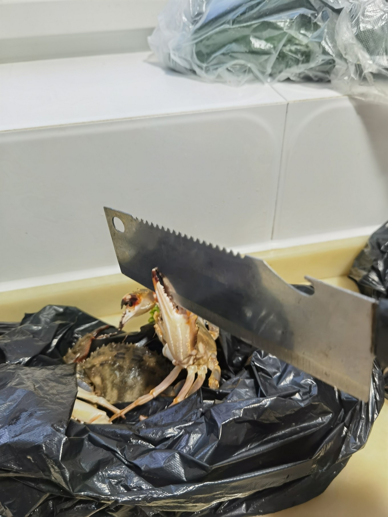 留一些螃蟹的湯汁,加水給兩位老人煮了面條,我的天,太好吃了
