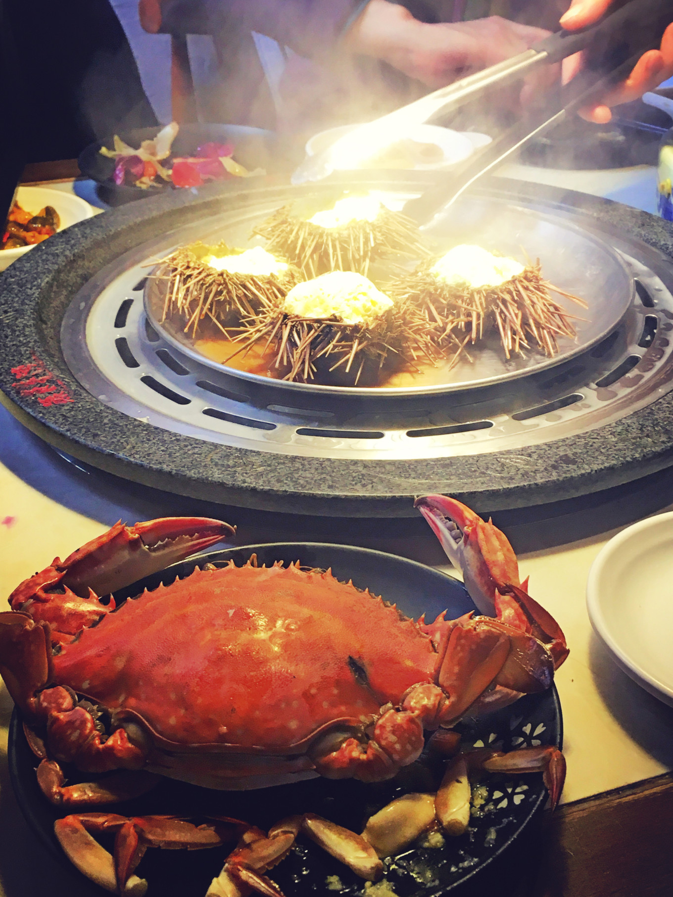 所有海鮮都是放進(jìn)去現(xiàn)蒸,不同海鮮蒸的時(shí)間不同,這個(gè)服務(wù)員會(huì)把時(shí)間設(shè)定好。因?yàn)榧依锍宋抑?,沒有人對(duì)海鮮特別有興趣,尤其是老爸還對(duì)蝦過敏,所以這次山東之行就吃了這么一頓海鮮