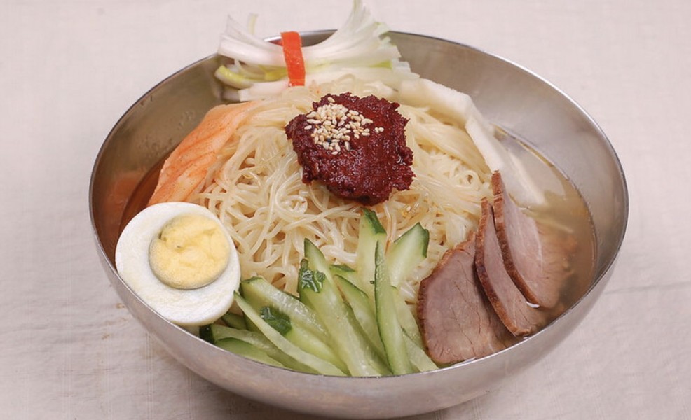 朝鮮冷面的主料為白面,蕎麥面和淀粉。做冷面時(shí)先把和好的面用專用機(jī)械壓入鍋中,煮熟后撈出,用冷水冷卻。后加牛肉湯或雞肉湯,配以泡菜、辣椒、牛肉片、雞肉丸子、蘋果片、雞蛋等佐料即可食用。