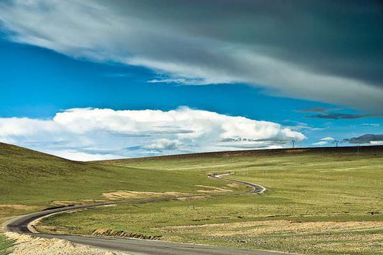 隨著旅游業(yè)的發(fā)展,公路的修建,像納木錯(cuò)這樣的“天湖”變得不再遙遠(yuǎn)。納木錯(cuò)雖然是湖,但絕不能忽略它絕美的草原。如果納木錯(cuò)是“天神的女兒”或“大山的妻子”,那么湖邊的草原就是她最美麗的裙擺。這美麗的“裙擺”足夠大,從遠(yuǎn)離納木錯(cuò)幾十公里的當(dāng)雄,甚至更遠(yuǎn)的羊八井開始,草原就連綿不斷地出現(xiàn)在你的眼前。高原上的草甸的草并不像新疆、內(nèi)蒙古等地那樣,肆無忌憚地瘋長,它們總是悠悠長出幾寸來,正好把大地染綠?;虬?、或黑的牦牛散落在綿延的“綠色地毯”上,一道道湛藍(lán)的河水畫著美妙的弧線穿過。遠(yuǎn)處的山上也披著薄薄的草地,由于全被草地覆蓋,山顯得毫無棱角,反而呈現(xiàn)出優(yōu)雅的立體弧線。光線透過云層有一搭沒一搭地灑落在山上,同時(shí)投下云的影子隨著山勢起起伏伏,好像是在翩翩起舞。