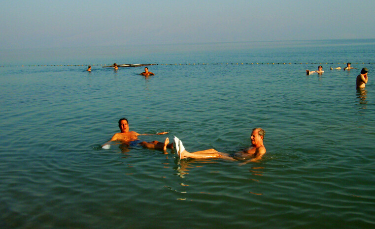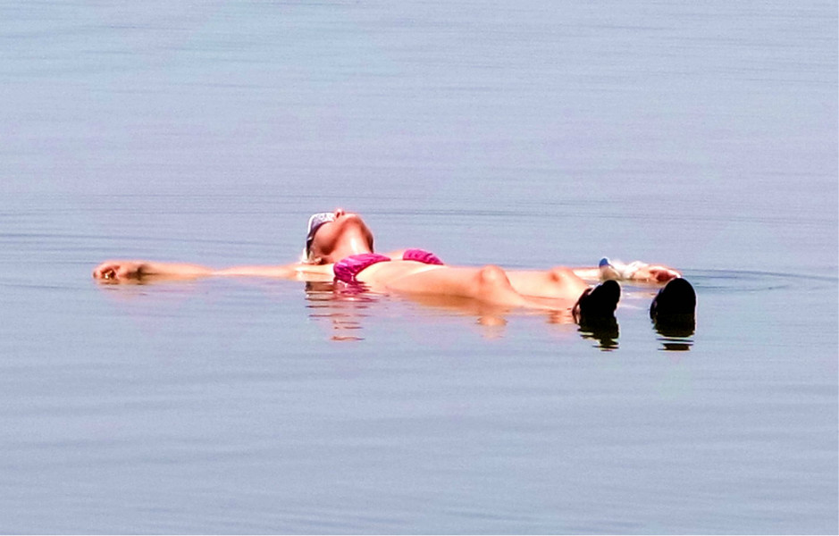 死海富含礦物質(zhì)的海水和提煉出來的黑泥,據(jù)說對皮膚病具有神奇療效,所以死海沿邊有醫(yī)療皮膚病的溫泉和住宿設(shè)施,同時也有沐浴設(shè)備和毛巾出租,游人可在死海上享受漂浮之樂。