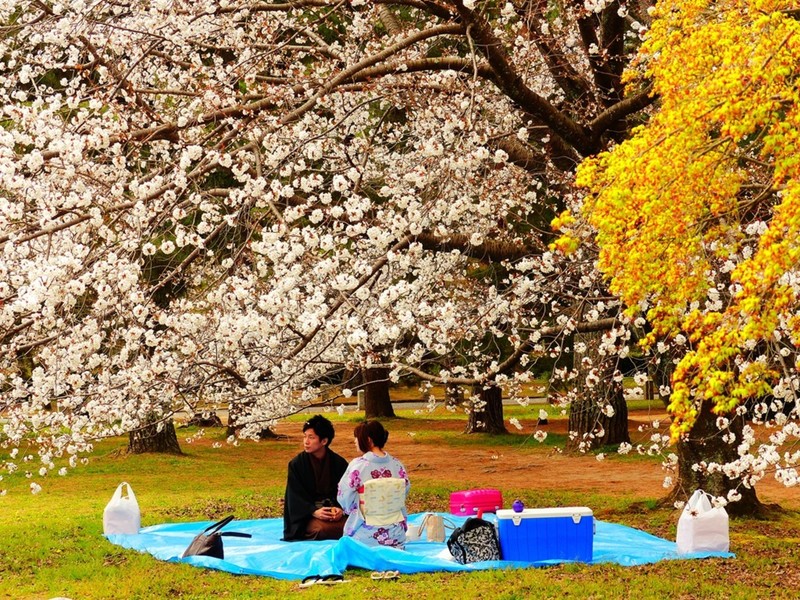 日本各地有數(shù)不清的賞櫻名所,就拿人氣最高的東京來(lái)說(shuō),上野公園、京都御苑、千鳥(niǎo)之淵、隅田公園…都是賞櫻絕對(duì)不能錯(cuò)過(guò)的熱門(mén)景點(diǎn)。櫻花盛開(kāi)期間,日本人總是早早地就到這些賞櫻名所里占好一株開(kāi)的美的櫻樹(shù),鋪上塑料布,擺好小案桌,然后等家人、伙伴或同事到齊了,集體圍坐在這株櫻樹(shù)下,享受帶來(lái)的美食,然后盡興地暢聊。
