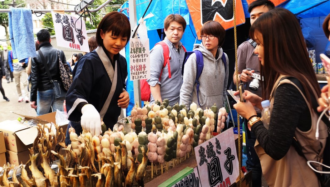 如果帶的美食不夠吃、沒(méi)吃飽,那也不要緊,大多數(shù)的賞櫻景點(diǎn)均開(kāi)設(shè)了傳統(tǒng)小吃一條街,來(lái)增添節(jié)日氣息??爵滛~(yú)、巧克力香蕉、鯛魚(yú)燒、炒蕎麥面等各種美食,保管讓你吃個(gè)夠。
