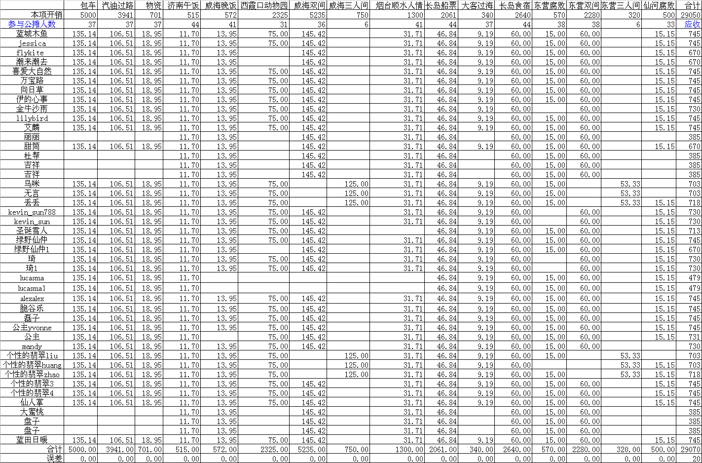 附:本次活動的財務(wù)報告,七人自駕的油費、過路費沒有計入