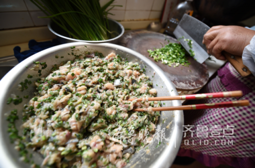 黑石嘴一家漁家樂正在為客人準備山東長島特色的鲅魚塊餃子