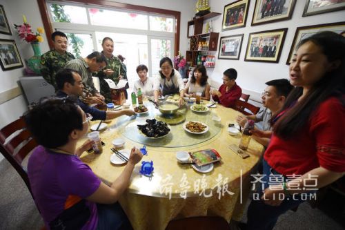 客人們都回來后,李清和家人將菜和蒸的海菜包子端上了桌。漁家小院里彌漫著海鮮誘人的香氣,海參、鮑魚、對蝦色香味俱全,稍加蒸煮的扇貝、牡蠣讓 人饞涎欲滴?!俺缘米〉枚己芎茫貏e有家的感覺?!睆奶旖騺黹L島旅游的王先生對“擁軍老娘”漁家樂贊不絕口,“每年我都帶家人來一次。”