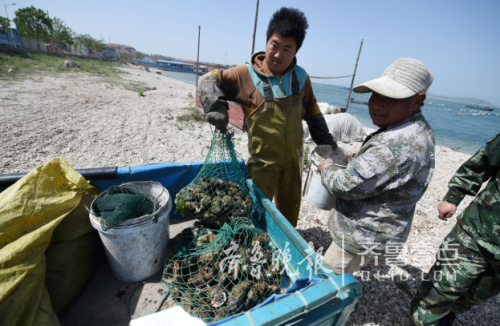 在黑石嘴村海邊,老漁民黃元臣正忙著將剛撈上來的新鮮海螺搬上摩托車, 他兒子正在清理小漁船上雜物。黃元臣說,出海打漁是累活,休漁期應該能休息 了,但是他們一點也閑不著,因為漁家樂的旺季即將到來,他們要忙著準備漁家樂,口碑最好的長島漁家樂 準備招待客人。
