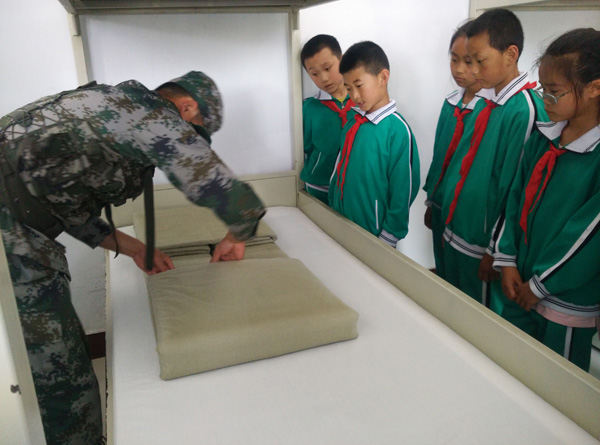 在軍營(yíng)中,學(xué)生們參觀了部隊(duì)訓(xùn)練基地、活動(dòng)中心、戰(zhàn)士宿舍,聽(tīng)?wèi)?zhàn)士們介紹了部隊(duì)的光榮歷史和優(yōu)良傳統(tǒng),還現(xiàn)場(chǎng)觀摩戰(zhàn)士整理內(nèi)務(wù)。看著戰(zhàn)士們疊得整齊如豆腐塊似的被子,學(xué)生們不由自主發(fā)出“嘖嘖”的贊嘆聲。