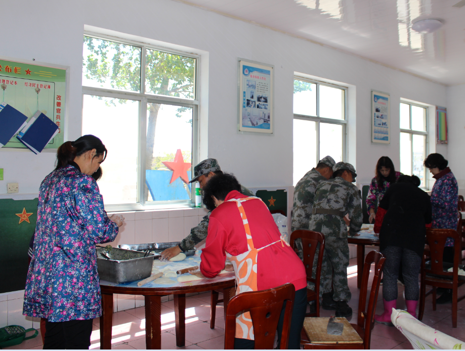 山東長(zhǎng)島(山前村婦代會(huì)成員進(jìn)軍營(yíng)為戰(zhàn)士們包餃子,帶去家人的關(guān)懷和溫暖)