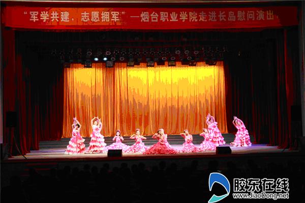 晚上,本次活動(dòng)的壓軸大戲在山東長島縣影劇院上演,來自煙臺(tái)職業(yè)學(xué)院青年藝術(shù)團(tuán)的的志愿者們登臺(tái)獻(xiàn)藝,為子弟兵們送上了精彩的文藝演出。舞臺(tái)下近600個(gè)座位座無虛席,舞臺(tái)上近20個(gè)節(jié)目精彩上演,歌曲、舞蹈、朗誦、相聲、街舞,精彩節(jié)目一個(gè)接著一個(gè),不時(shí)贏得臺(tái)下官兵的熱烈掌聲。