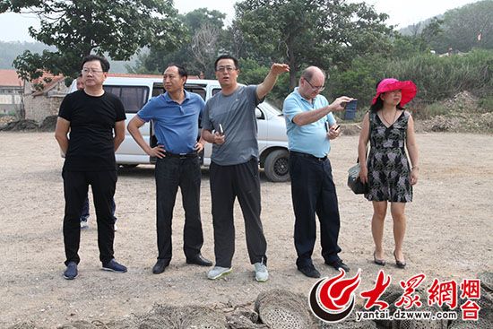 專家在烽火臺觀景平臺,考察西海岸和中心漁港項目