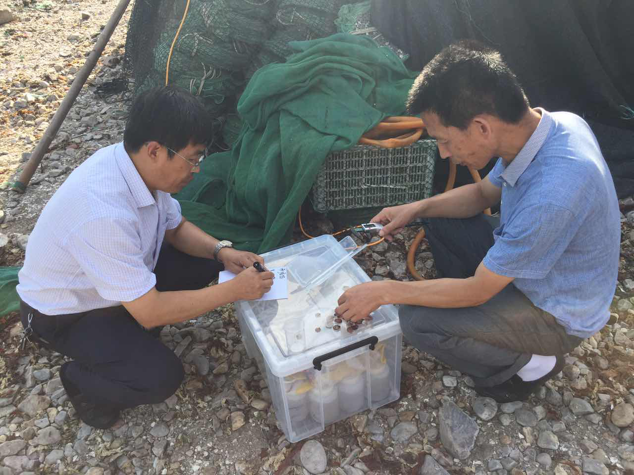 縣水產(chǎn)研究所專家于7月25日下午對北隍城海區(qū)浮游生物情況進行拖網(wǎng)調查,長島漁家樂并對試養(yǎng)的新品種風信標扇貝和港灣扇貝生長情況進行查看。本次調查共設4個取樣點,每點取1個水樣。通過對檢測結果的分析研究,對是否進行海區(qū)扇貝半人工采苗提供科學依據(jù)。