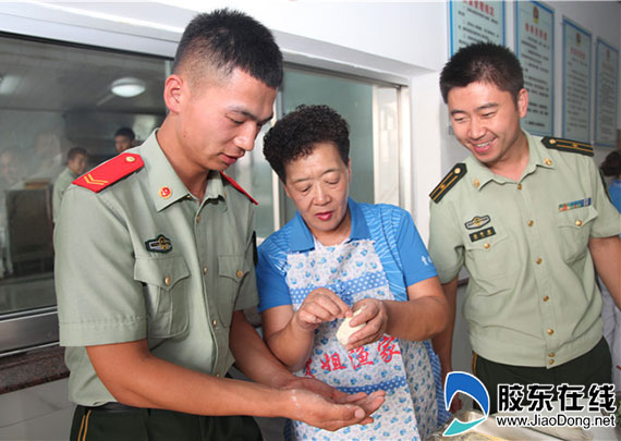 9月1日,“賈平按照海島人的習(xí)俗,購(gòu)買(mǎi)了最好的鲅魚(yú),帶領(lǐng)著由長(zhǎng)島漁家樂(lè)漁家大嫂組成的“漁嫂擁軍演出隊(duì)”來(lái)到消防大隊(duì)為退伍老兵包餃子送行。搟皮、調(diào)餡、包水餃,賈平手把手教退伍老兵包水餃,漁家大嫂們也和戰(zhàn)士們一起包水餃,大大的水餃蘊(yùn)含著“兵媽媽”和漁家大嫂滿(mǎn)滿(mǎn)的情誼。她還為隊(duì)上的戰(zhàn)士們帶來(lái)了親手做的四個(gè)特色菜,特意為退伍老兵準(zhǔn)備了禮物。