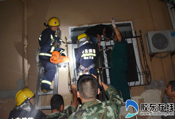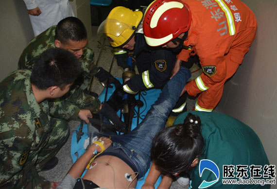 醉酒男子凌晨墜掛護(hù)欄 山東長島消防緊急救援(圖)