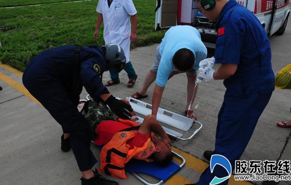 煙臺(tái)大欽島上一漁民小腿被絞斷 飛行隊(duì)緊急救助