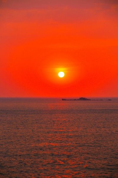 日落,太陽投射在這一望無際海面上的瞬間,那一抹攝人心魄的色彩。