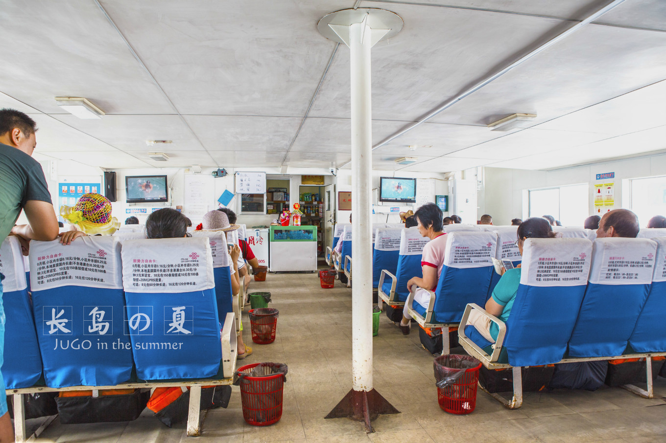 從蓬萊碼頭到長島有近40分鐘的船程,我們坐的大船叫祥龍?zhí)?,開得很穩(wěn),坐在船上有時候感覺不到船在行駛,連我這個“希臘暈船、長灘暈降落傘、斯里蘭卡暈飛機、普吉島暈游艇、清邁暈車、瑞士暈火車的”神奇生物這次居然沒有暈船……