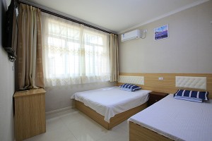 其次房間很干凈,通風(fēng),設(shè)備齊全。再一個就是周圍的環(huán)境很安全,房間絲毫不感覺吵鬧,出去不遠(yuǎn)就到海水浴場,沙灘比較干凈,