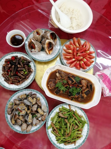 到了小陶家,干凈整潔,新裝修的房子二層小樓真的很羨慕還都是獨(dú)立衛(wèi)浴,房間結(jié)構(gòu)很好,寬敞明亮,我們一家三口住的很舒適,吃的就更豐盛了,每餐店家上來(lái)6個(gè)菜一湯,其中4個(gè)時(shí)令海鮮,第一餐還每人奉送一碗新鮮的原滋原味的海參花湯,并指導(dǎo)我們?nèi)绾握_的品味海鮮,小陶媽媽的手藝不錯(cuò),感覺(jué)吃海鮮非得到長(zhǎng)島。我的孩子很挑食,居然都津津有味的吃了不少,特別是我向小陶要求為孩子加的主食,老板小陶毫不猶豫的就給他用微波爐熱好奉送,很令人感動(dòng)。