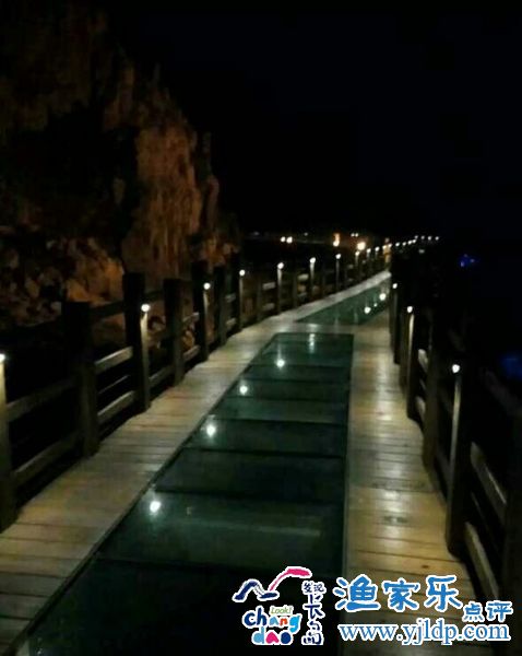 回到漁家民宿之后聽小龐老板說晚上的玻璃棧道更好看,有燈光,于是特別后悔回來早了,然后小龐老板一看我們這個樣子,就笑著說他晚上沒事兒可以開車送我們過去,免費的吆,就當吃完飯散步了,哈,把我們高興壞了,于是,晚飯過后我們就浩浩蕩蕩的出發(fā)去林海,重走玻璃棧道。