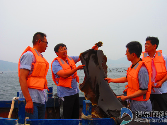 5月8日4點(diǎn),天微亮。李盛平早早來到位于南隍城村北的第十養(yǎng)殖場(chǎng)??吹揭卉嚱又卉噺暮@锸斋@的海帶,他心里充滿了喜悅:長(zhǎng)島旅游今年肯定是個(gè)豐收年。“干了這么多年,打眼看看出水海帶的體量和厚度,就能目測(cè)出個(gè)大概。今年至少在一萬噸以上?!笨吹截S收情景,李盛平一臉的興奮?!澳銈儊淼们砂?!今天是我們燙煮腌制海帶的開工日,這也標(biāo)志著南隍城進(jìn)入海帶的收成期?!?