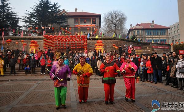 每逢春節(jié),花燈會(huì)在煙臺(tái)市民生活中必不可少,以煙臺(tái)山景區(qū)為例,活動(dòng)期間,景區(qū)邀請(qǐng)來(lái)自于煙臺(tái)本地南涂山、宮家島、南上坊、幸福等各具膠東特色的民間藝術(shù)演出團(tuán)體進(jìn)行秧歌表演,表演項(xiàng)目豐富多彩,包括震山鼓、火爆劇、踩高蹺、跑旱船、耍毛驢等。晚間市民將可以欣賞到喜聞樂見的舞龍、舞獅、威風(fēng)鑼鼓、腰鼓表演。
