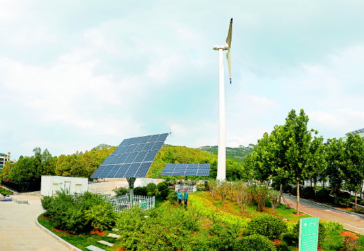 據(jù)了解,國(guó)網(wǎng)山東電科院微電網(wǎng)項(xiàng)目于2016年4月投運(yùn),運(yùn)行一年多就實(shí)現(xiàn)綠色發(fā)電21萬(wàn)度,是山東首個(gè)集風(fēng)、光、柴、長(zhǎng)島民宿儲(chǔ)于一體的新能源(示范)工程,也是集發(fā)電、科研、示范于一體的智能微電網(wǎng)工程。院內(nèi)微電網(wǎng)項(xiàng)目由光伏幕墻、車(chē)棚薄膜光伏、樓頂固定式光伏、光伏逐日系統(tǒng)、水平軸風(fēng)機(jī)、垂直軸風(fēng)機(jī)、電池儲(chǔ)能系統(tǒng)等一系列技術(shù)領(lǐng)先的新能源系統(tǒng)構(gòu)成,如今該工程已經(jīng)成為了院區(qū)內(nèi)獨(dú)具匠心的新能源一景。