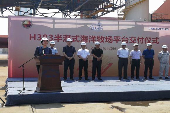 6月26日,大欽島鄉(xiāng)首座半潛式海洋牧場平臺交付儀式在龍口中集來福士海洋工程有限公司舉行,省海洋與漁業(yè)廳巡視員付日新、縣政協(xié)副主席陳華利等領導出席了交付儀式。該項目由長島弘祥海珍品有限公司投資、龍口中集來福士海洋工程有限公司承建,總投資900余萬元、面積700平方米、作業(yè)水深30米、采用錨泊定位,是一處集海洋牧場觀測、預警、科研以及海上觀光、休閑垂釣、餐飲住宿于一體的多功能海洋牧場平臺。