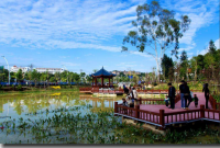 竹葉海公園位于硚口區(qū)與東西湖區(qū)之間,北靠張公堤,南臨解放大道,總規(guī)劃面積達1350畝,其中水面面積達800余畝。據硚口區(qū)相關負責人介紹,該公園目前已形成七孔橋、水榭、水上長廊等景