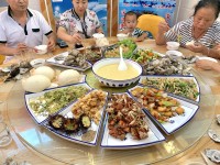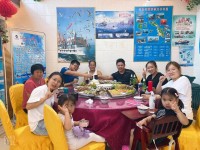 我在長島漁家樂點評網(wǎng)上看到長島萬福漁家樂的評價很好,我當時也有懷疑也許是刷出來的,當我加上小冷的微信,詳細了解了島上的旅游線路及吃住情況之后,內(nèi)心感覺到老板小冷很熱情,回答即耐心又詳細,讓我非常期待上島游玩。當我們5月28日全家三代四口人到碼頭時,原來一直認為跟我聊天的是一個大姑娘,哈^_^哈!竟然是一個憨厚樸實的帥小伙兒,小伙子像家人一樣接過我們的大拉桿箱,提著就往車那邊走,當時我的心里暖暖的,就憑著這個細節(jié)(地不是很平整,怕傷著拉桿箱輪子),感覺到小冷的人品太善良了,我堅信選擇的萬福漁家是正確的,是真真兒的好啊!到了漁家,小冷的父母也特別和藹,對我們跟親人一樣,熱情地招待我們,進屋沒一會兒,一盆滿滿的扇貝、大大的大蝦、海膽、海參、兩條紅燜海魚、大海螺、鲅魚餡餃子等已經(jīng)擺上餐桌,我寶貝兒一看:哇!這么多!這么大!每天各種海鮮吃個曝,唉!那個鮮呀!不說了,流口水了!